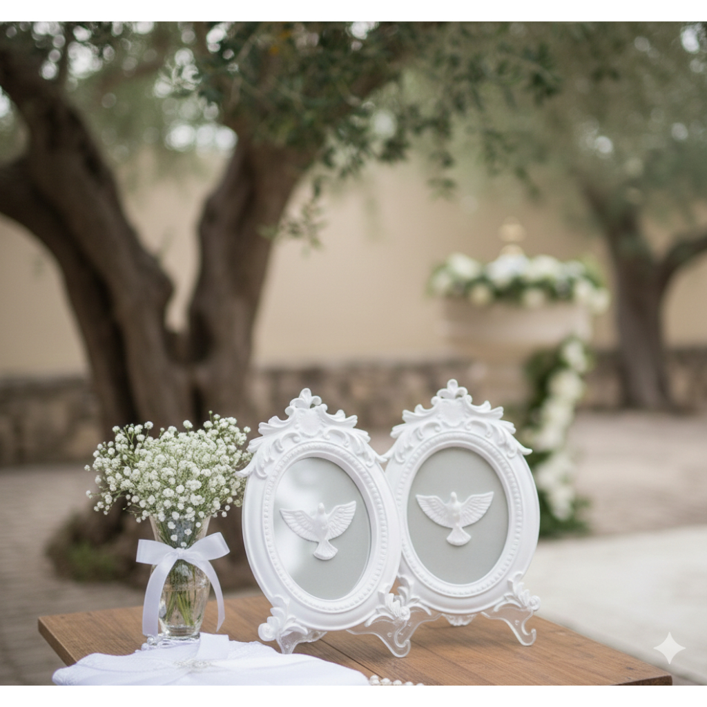 Kit com 10 Lembrancinhas D123 Dourado Branco Batizado Nascimento Festa Divino Espirito Santo Espelho