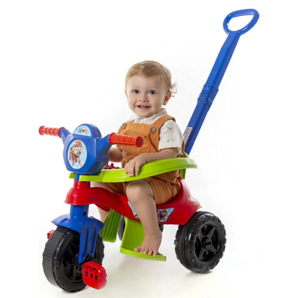 Motoca Triciclo Velocipide Kendy Patrulha Canina C/ Empurrador e Proteção Lateral Bebe Menino e Menina