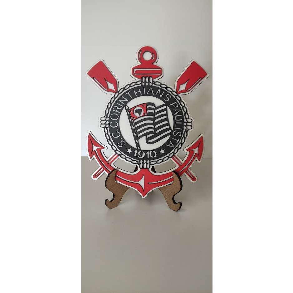 Escudo Corinthians em MDF Alto Relevo Decoração em Miniatura Brasil Futebol