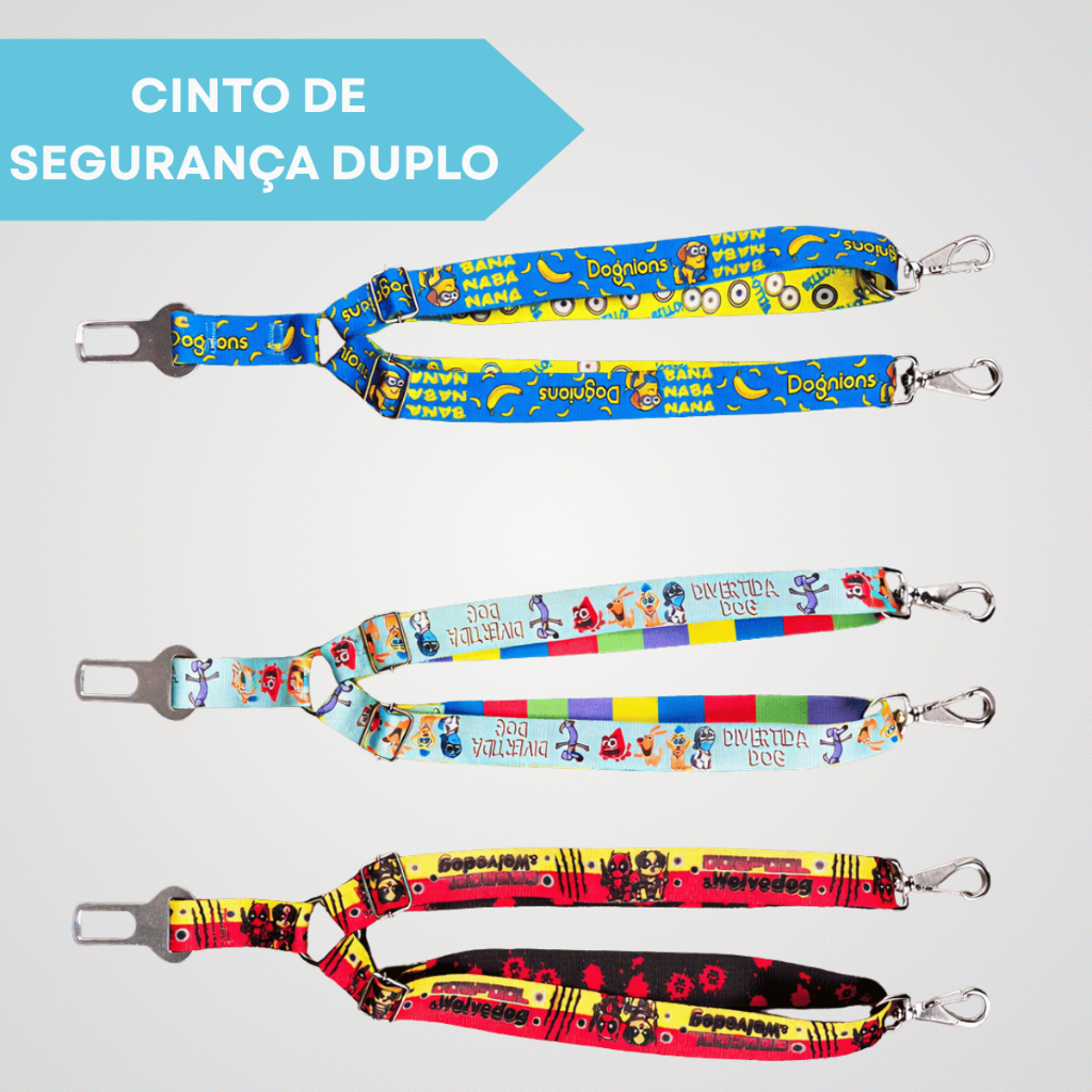 Cinto de Segurança Duplo Seda Tematicos 2 Pet Animais de Estimação Ajustavel Universal