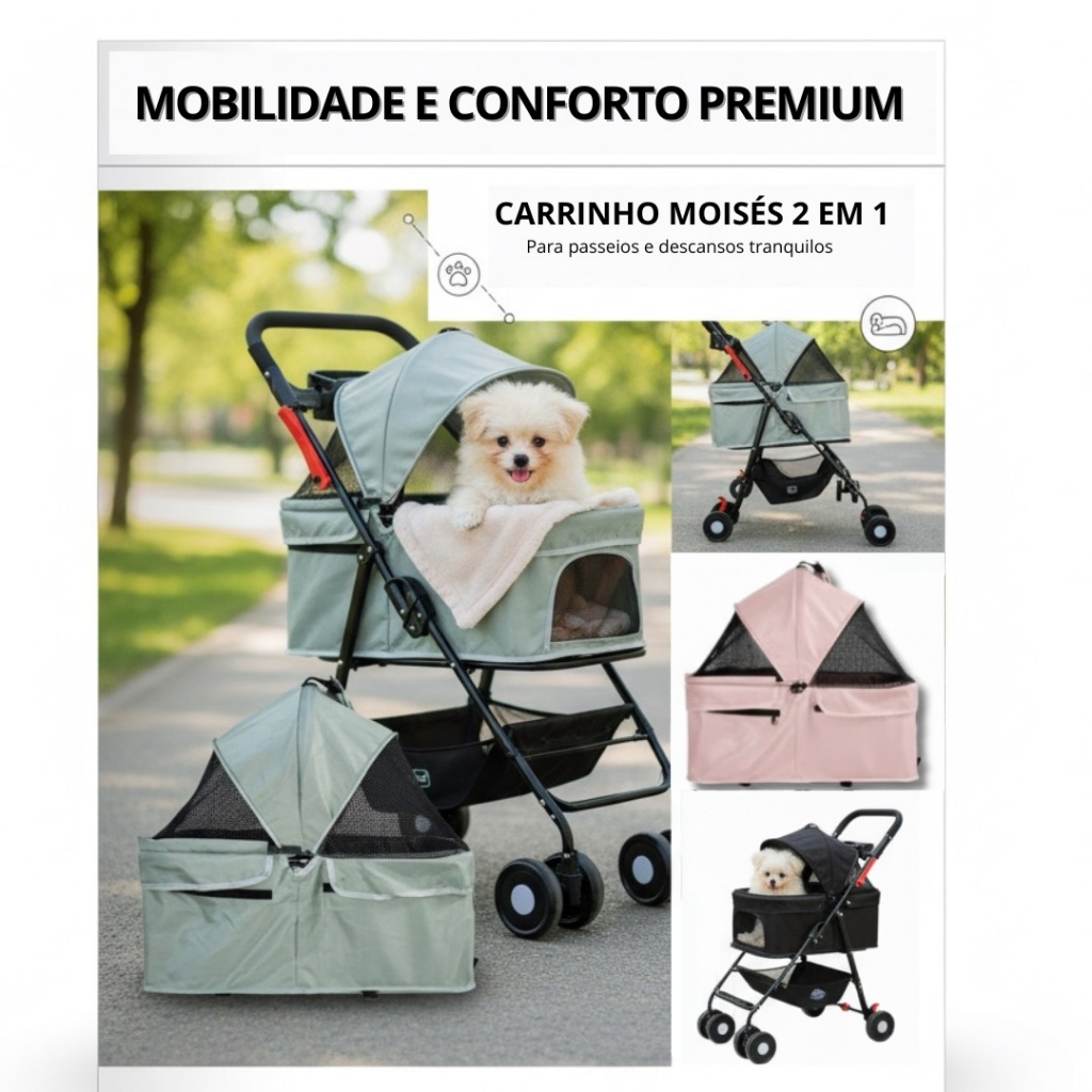 Comprar na ShopeeCarrinho de Passeio Pet Animal Estimação Cães Gatos Até 15kg Porta Copo Dobrável Cinza Preto Rosa