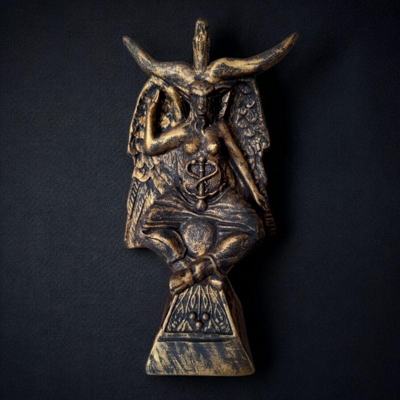 Comprar na ShopeeEstátua de Baphomet ou Belzebu 20cm dourado preto prata cobre em gesso fino acabamento bonita