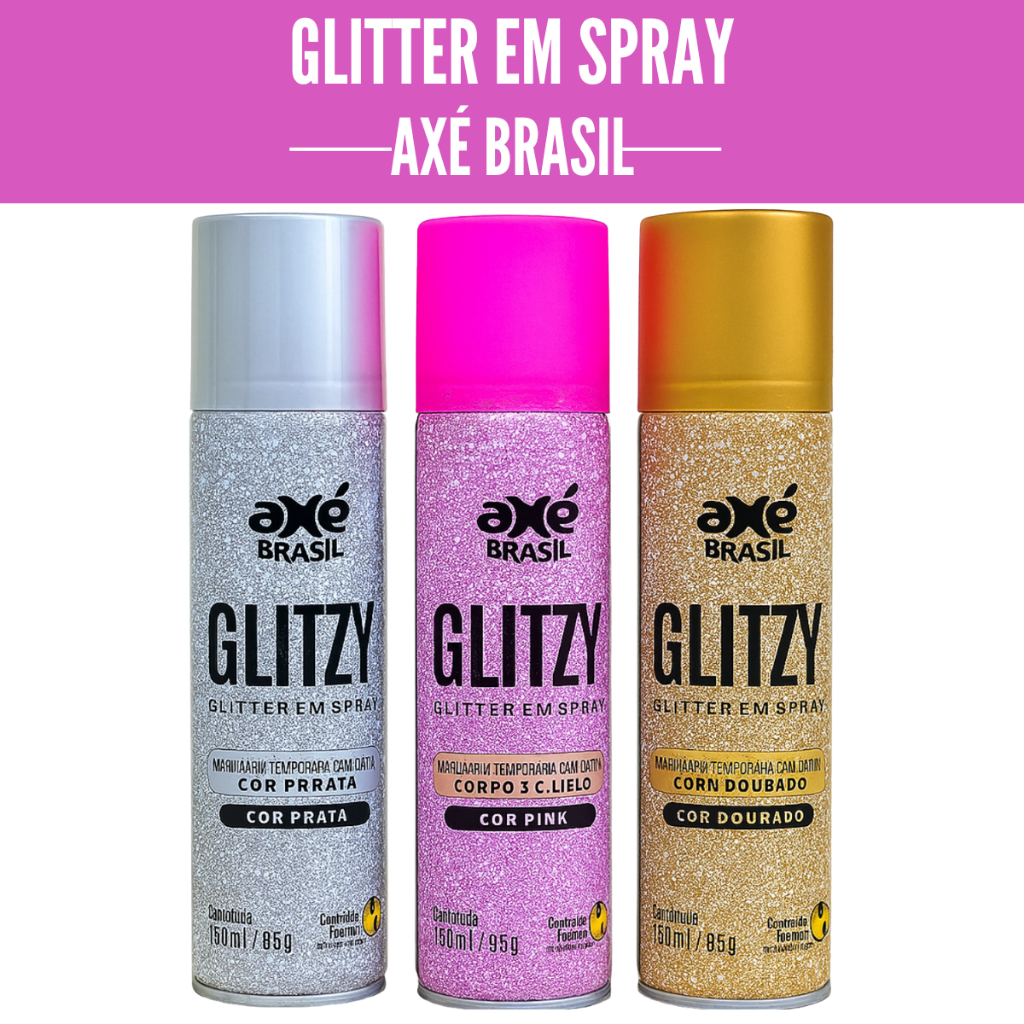 Comprar na ShopeeSpray De Glitter Cabelo e Corpo Roupa Axé Brasil 150ml Dourado/Prata/PINK Glitzy/Verde/Azul/Preto/Ro
