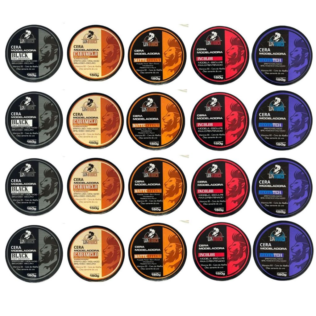 Comprar na ShopeeKit 20 ceras capilares (Incolor, Matte, Caramelo, Black e Teia) 150g a unidade - LGN Barber