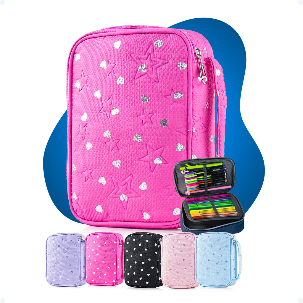 Comprar na ShopeeEstojo Escolar Masculino Feminino Grande 2 Ziperes Duplo