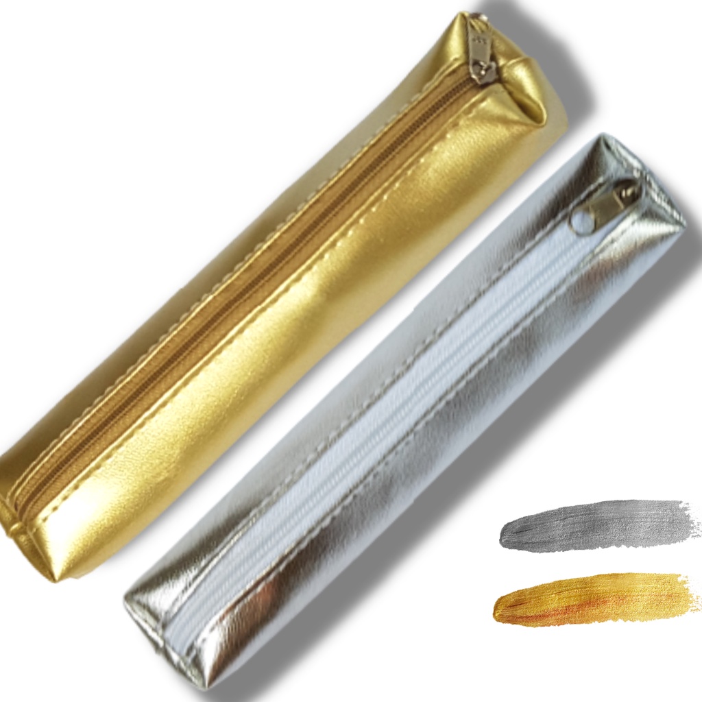 Estojo tubinho Metálico Prata Dourado fino pequeno feminino