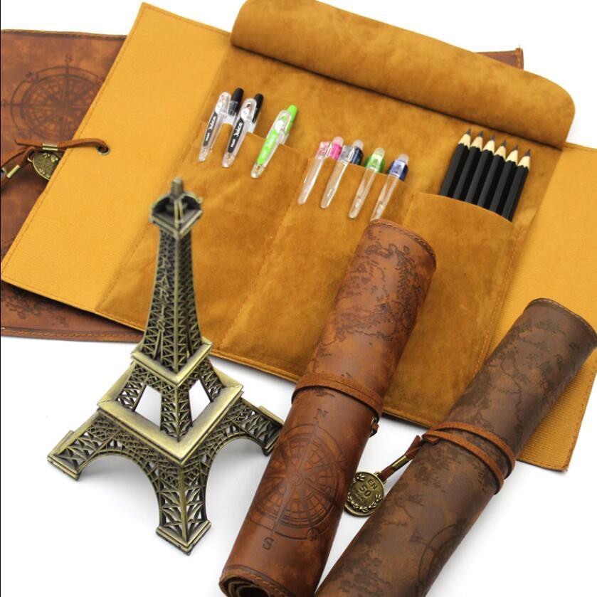 Comprar na ShopeeSaco De Lápis De Lona Vintage Em Couro De Grande Capacidade Rolo Criativo Do Mapa Tesouro