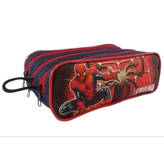 Estojo escolar 3 divisões Homem aranha azul marinho