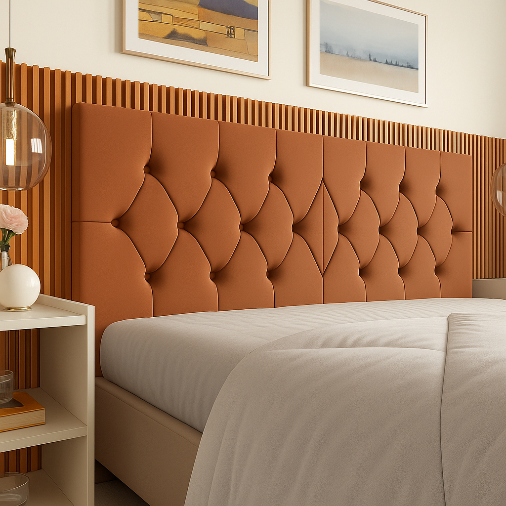 Comprar na ShopeeCabeceira Estofada de Cama Box Casal e Queen em Corino e Suede - Capitonê Palito Tulipa