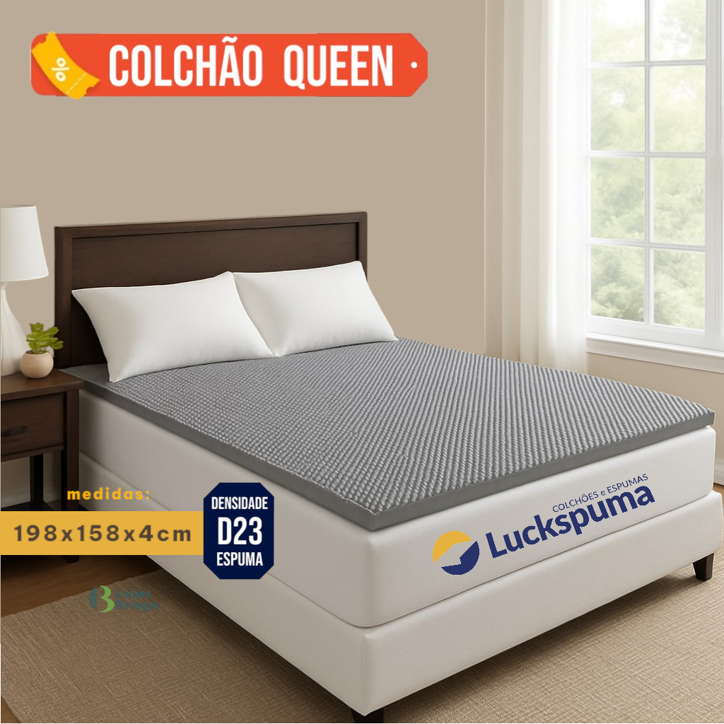 Colchao Luckspuma Pilow Top Queen Colchonete Espuma Casca Caixa de Ovo Anti Escaras 158x198x4cm