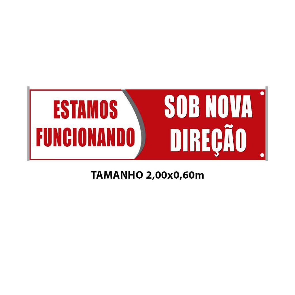 Comprar na ShopeeFaixa Estamos Funcionando Sob Nova Direção Branca e Vermelha Impressão em Lona 1,20x0,50m