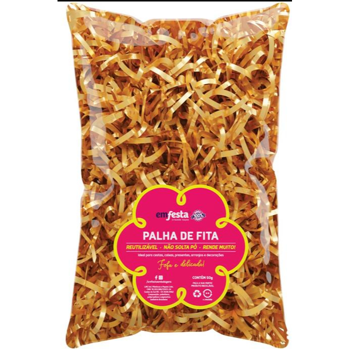 Kit com 2 pacotes de Palha para Decoração Bopp Dourado 50g