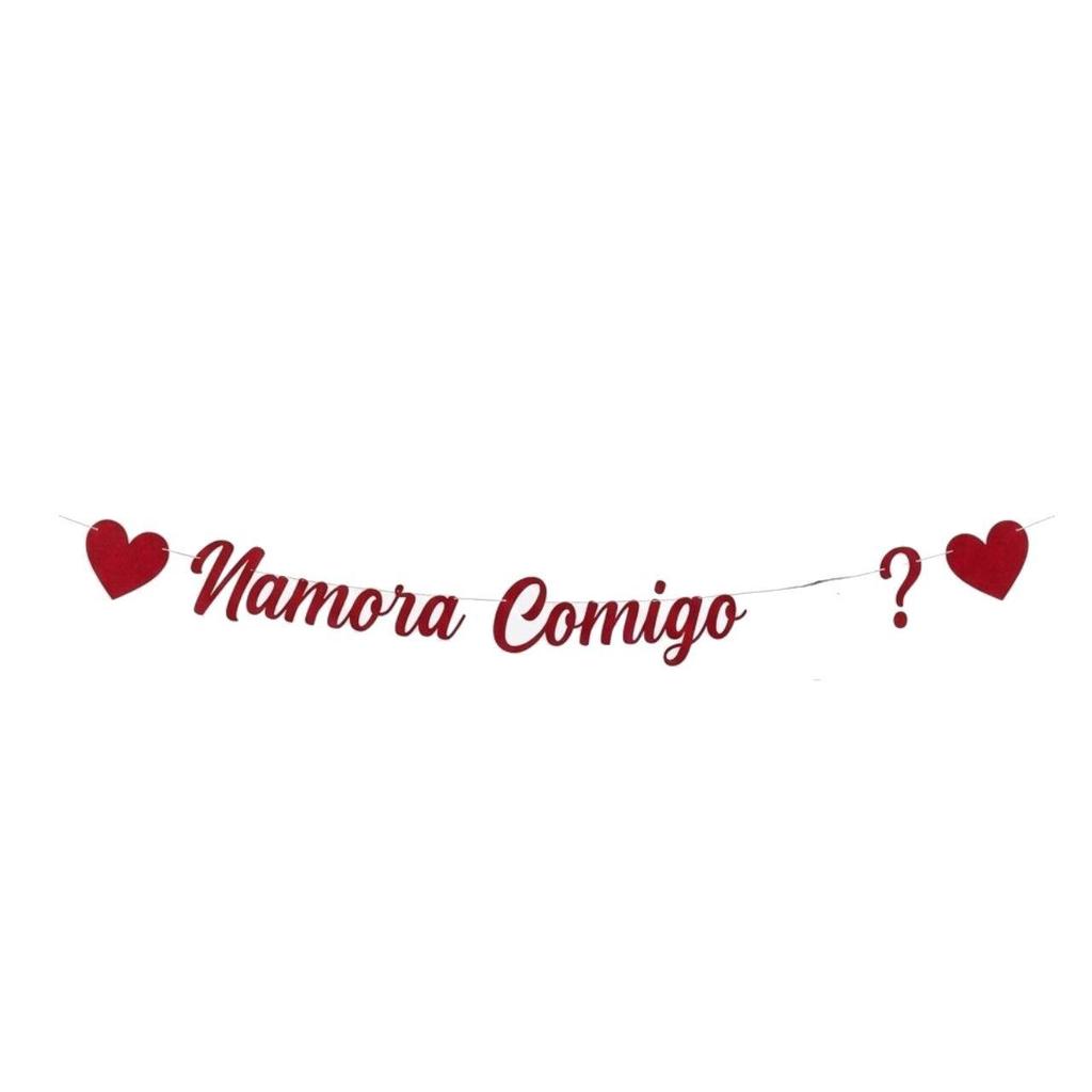 FAIXA DECORATIVA / BANDEIROLA - NAMORA COMIGO CORAÇÃO VERMELHO