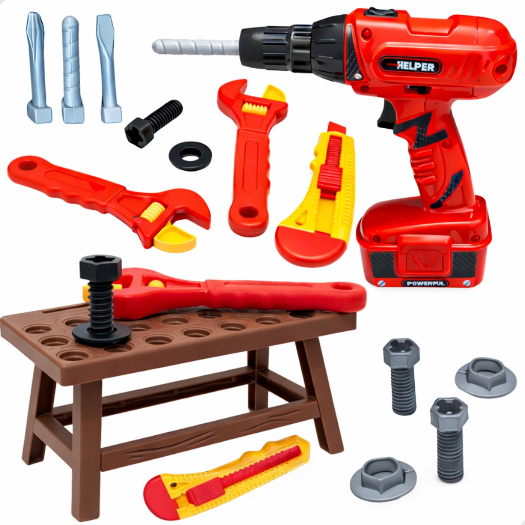 Comprar na ShopeeKit Ferramentas Infantil Com Bancada E Furadeira Parafusos Que Gira Educativo Peças