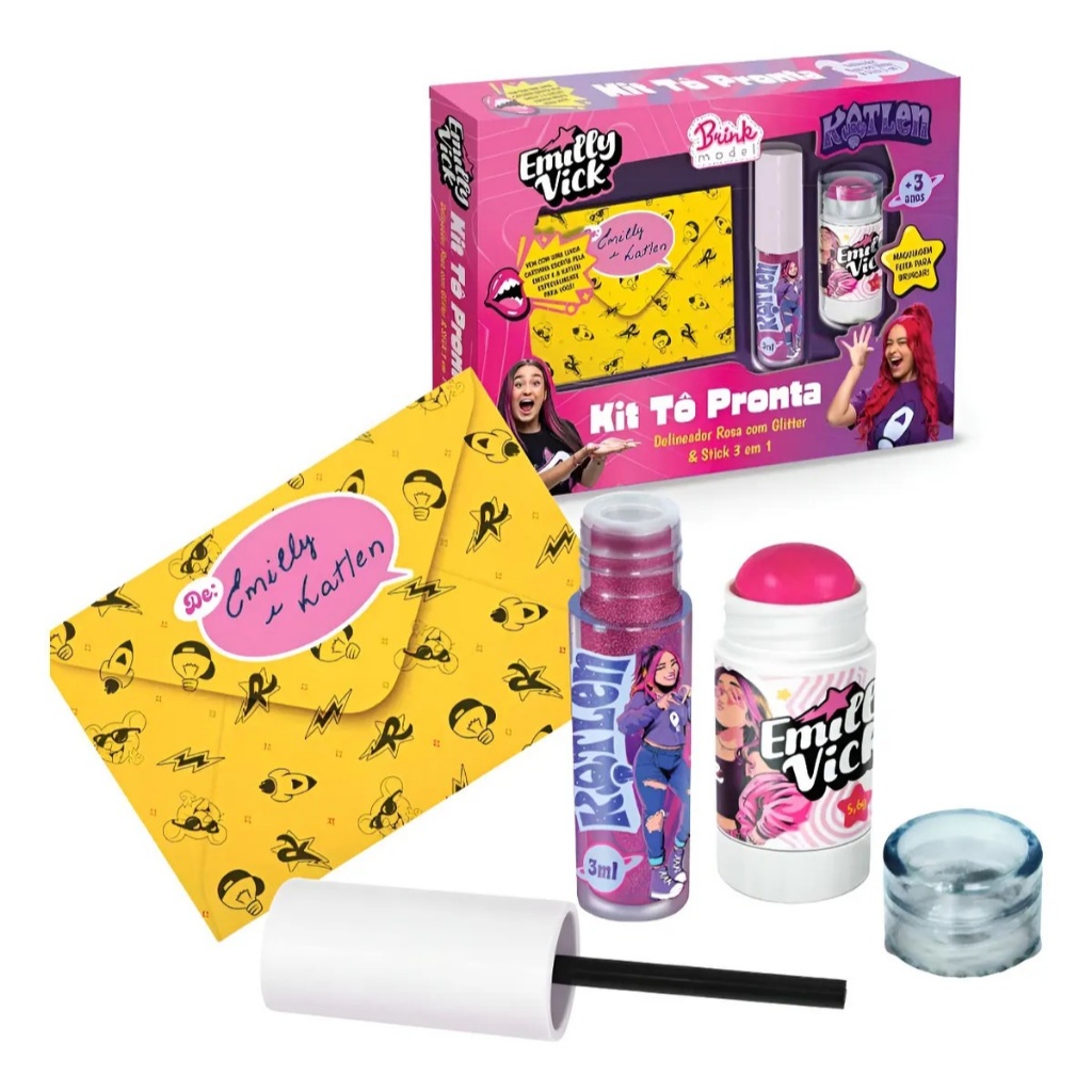 Comprar na ShopeeKit Maquiagem Infantil Tô Pronta Emilly Vick E Katlen Dos Rosa Com Cartinha - Brink Model