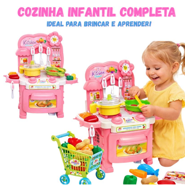 Comprar na ShopeeCozinha Infantil Menina Completa Fogão Forno Pia Carrinho Comidinhas