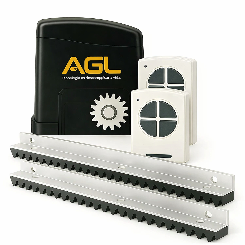 Kit Motor deslizante de correr AGL 300kg Trino Light 127 OU 220V COM OU SEM CREMALHEIRA