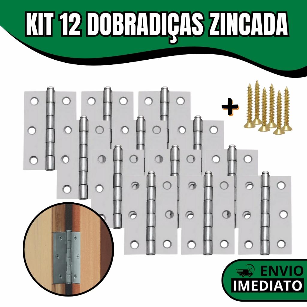 Comprar na ShopeeKit 12 Dobradiças Zincadas com Parafuso Tamanhos de 3,8cm a 10cm Porta