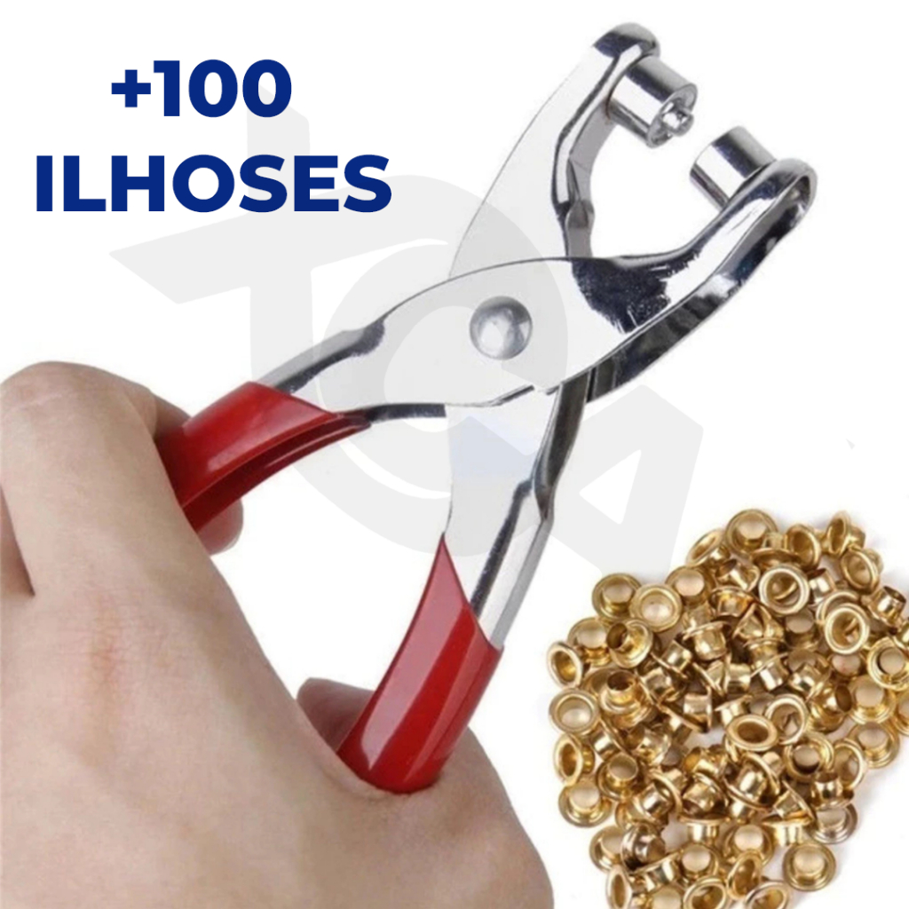 Alicate Para Colocar Ilhos Rebite Manual + 100 Ilhoses Dourados