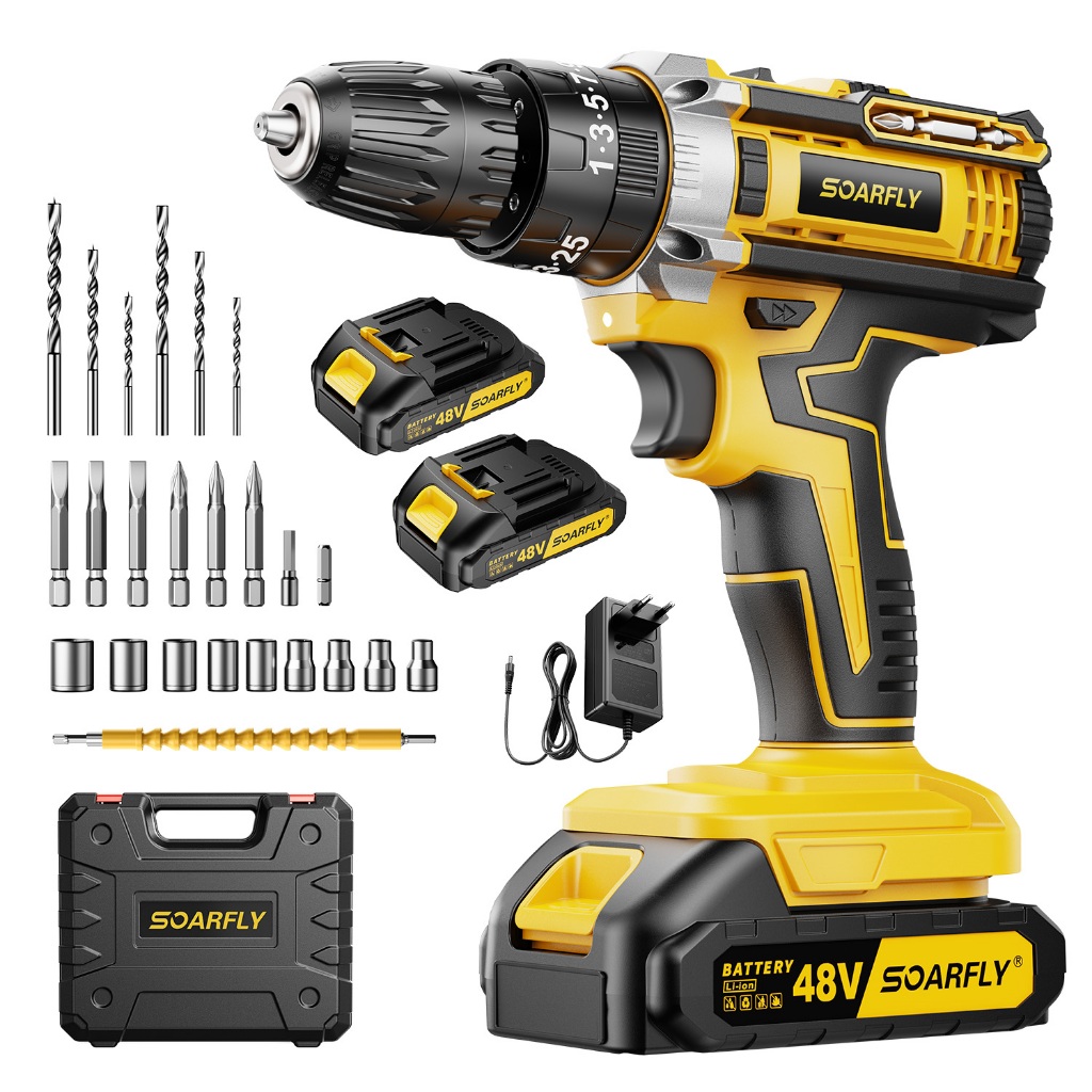 Comprar na ShopeeParafusadeira Furadeira 48V Profissional Kit Completo 2 Baterias 48v Torque Ajustável Perfuração Aço