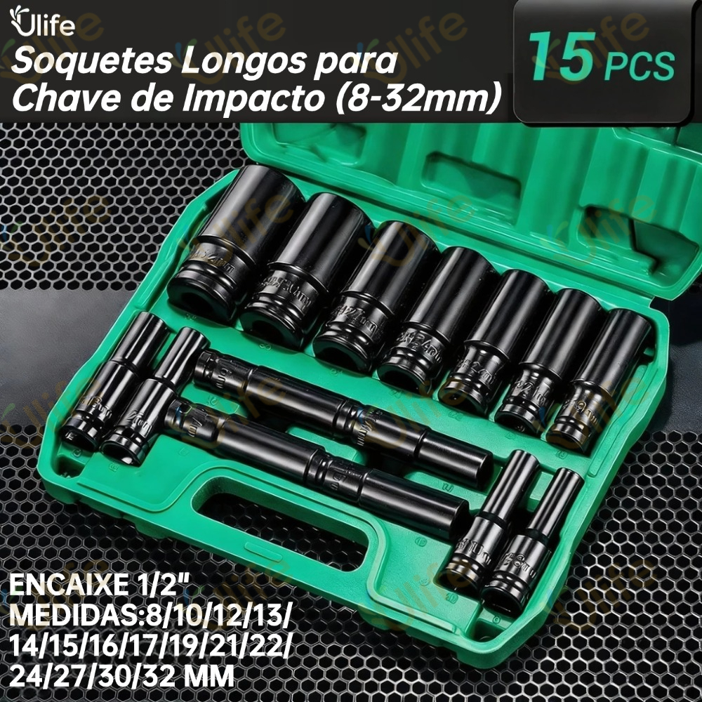 Comprar na ShopeeJogo Soquete Longo Sextavado Impacto 1/2 8 A 32 Mm 15pcs Ou 8 A 24 Mm 10pcs Com Maleta-Ulife