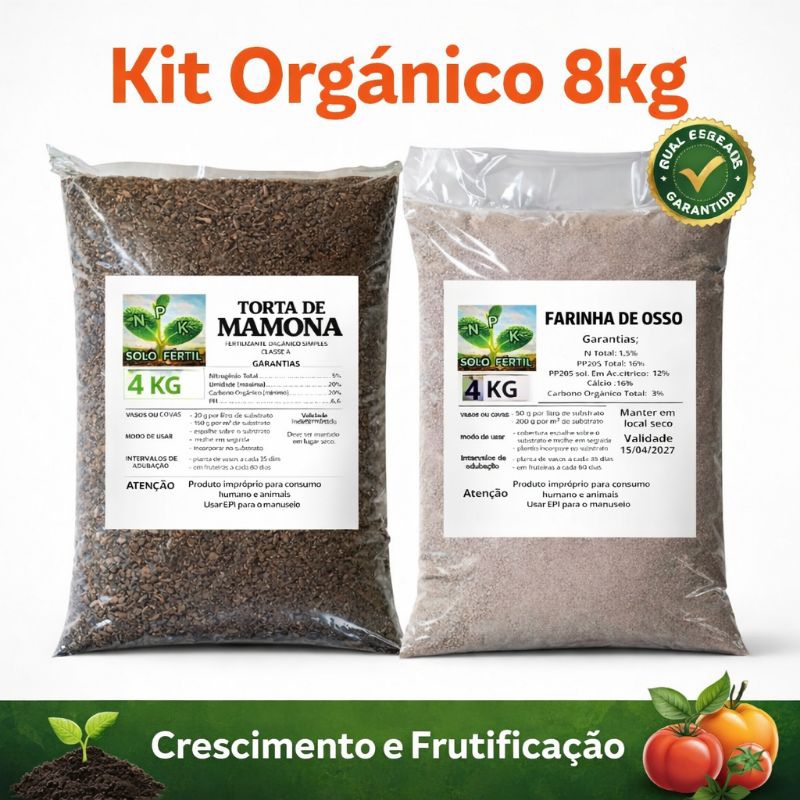kit Farinha de osso e Torta de mamona, adubo orgânico para plantas 8 kg