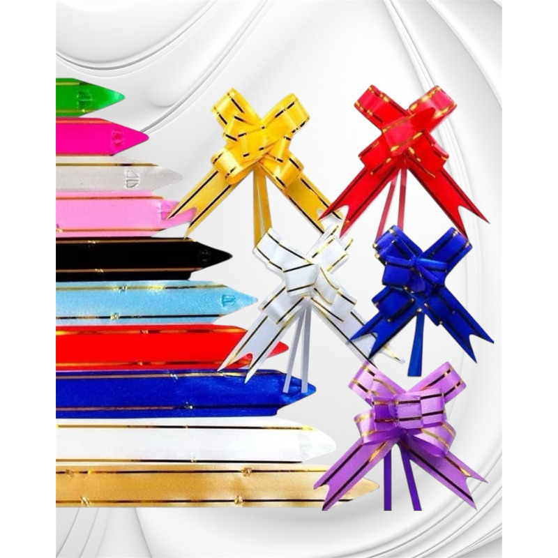 Kit 50 Laços Mágicos Fácil p/ Presente Filete Dourado P/M/G Diversas cores.