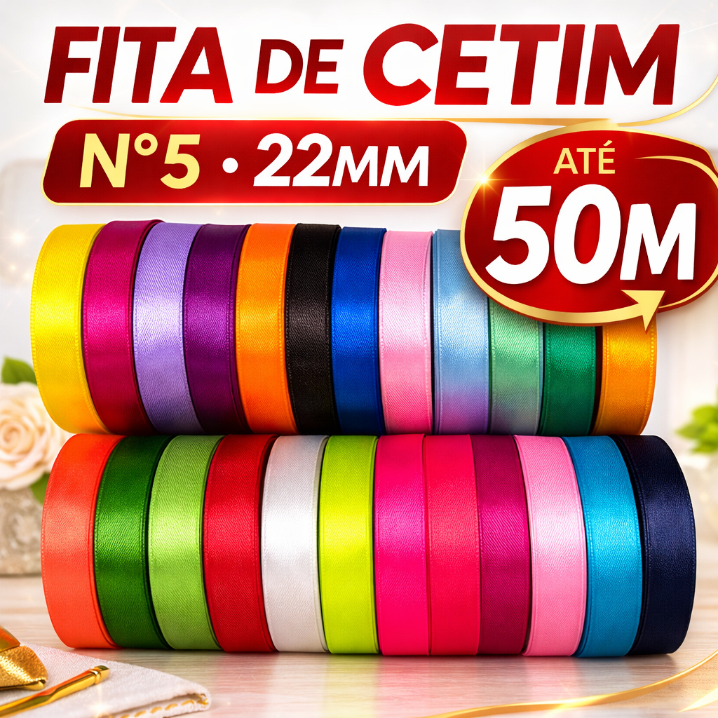 Fita de Cetim Nº5 (22mm) – até 50m – Laços, Artesanato, Presentes – Diversas Cores