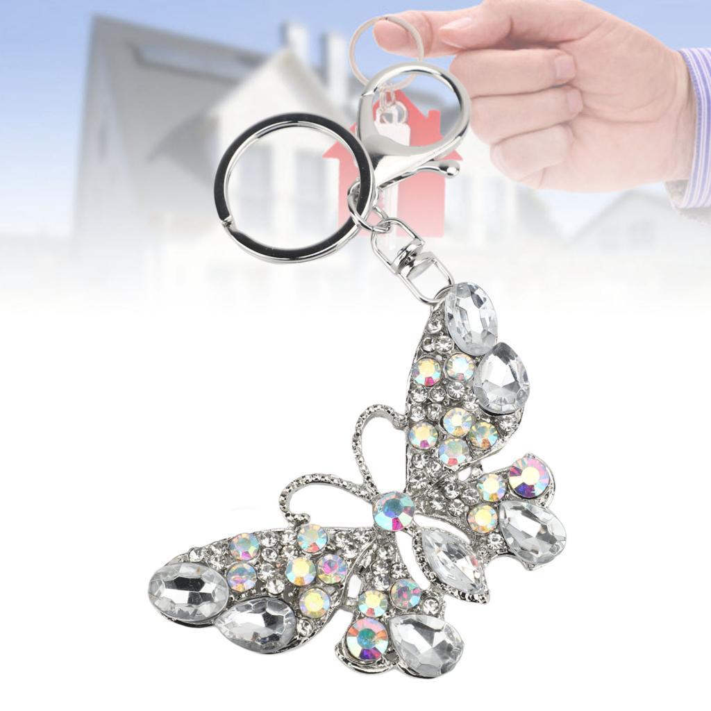 keaostore Chaveiro De Borboleta De Cristal BLING Pingente De Strass Brilhante Para Mulheres Bolsa HANDGAB (Cor)