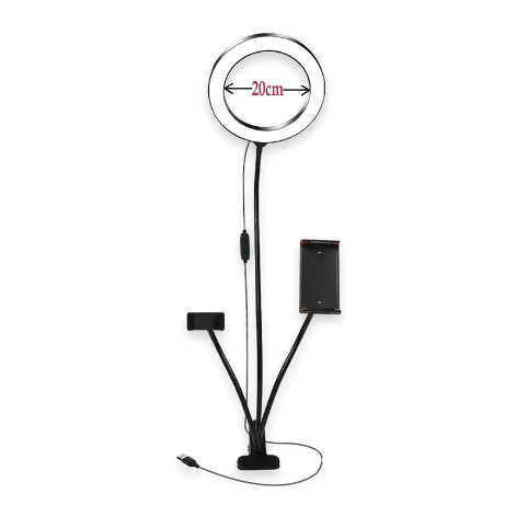 Comprar na ShopeeLuminária Ring Light Com Suporte Garra Para 2 Celulares De Mesa 3 em 1