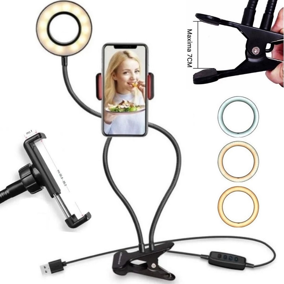 Comprar na ShopeeRing light luz led mesa suporte celular microfone de lapela kit videos aula celular smartphone