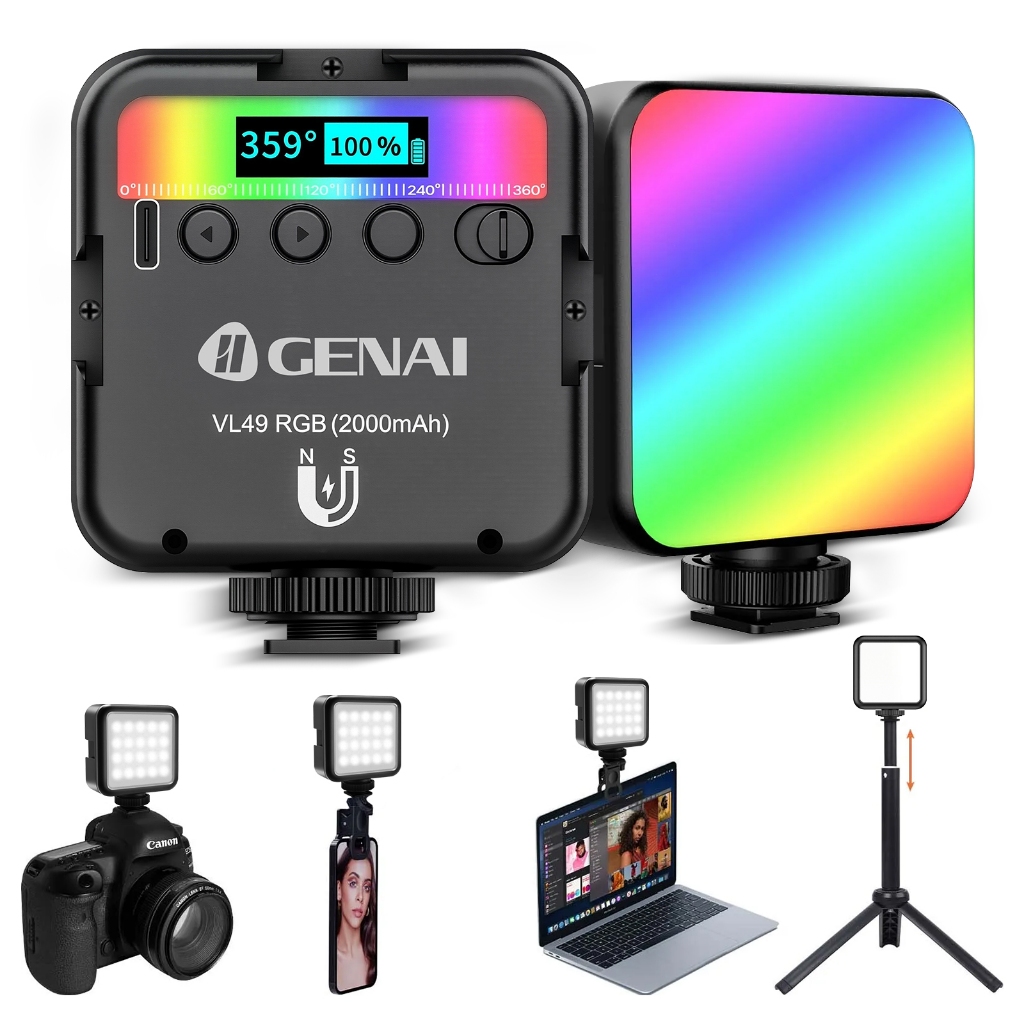 Comprar na ShopeeLuz de Vídeo LED RGB VL49 - 359 Cores, Bateria 2000mAh, Magnética