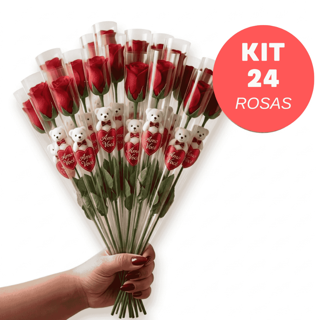 Presente Dia das Mães - Kit 24 Rosas Vermelha Embalada Individualmente PROMOÇÃO