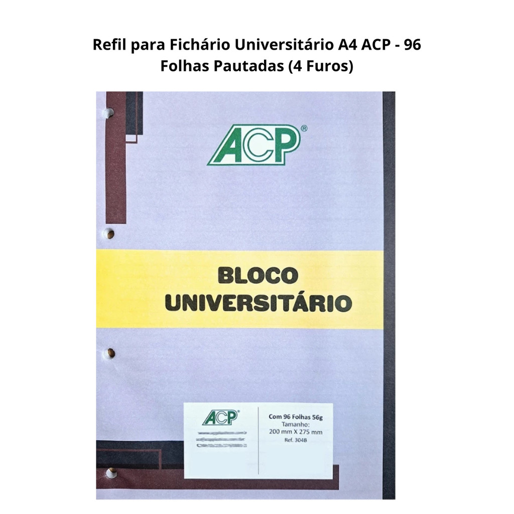 Comprar na ShopeeRefil para Fichário Universitário A4 ACP - 96 Folhas Pautadas (4 Furos)