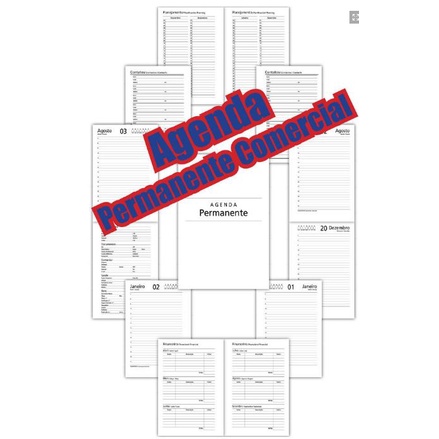 PACOTE COM 5 Miolo de Agenda Permanente Comercial - Refilado Para Espiral ou Wire-o - 13,5x20cm
