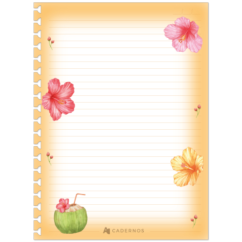 Refil Decorado Hibisco P/ Caderno AD C/ 50Fls 90g/m² Tamanho Colegial
