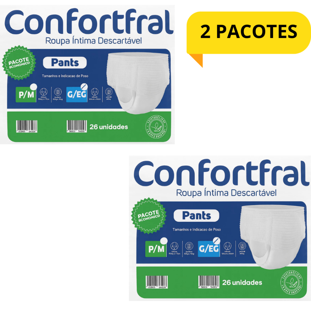 Comprar na ShopeeKIT 2 PACOTES /PACOTÃO 2 LINHA ADULTO PANTS ROUPA INTIMA G/EG CONFORTFRAL 52 UN TOTAL