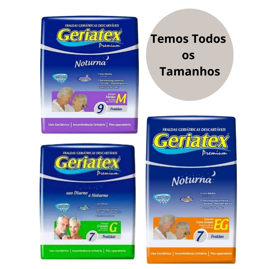 Fralda Geriatex Noturna Descartável Vários Tamanhos M G E EG