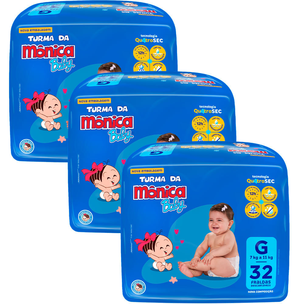 Comprar na ShopeeKit 3 Fraldas Turma Da Mônica Mega G - 96 Tiras