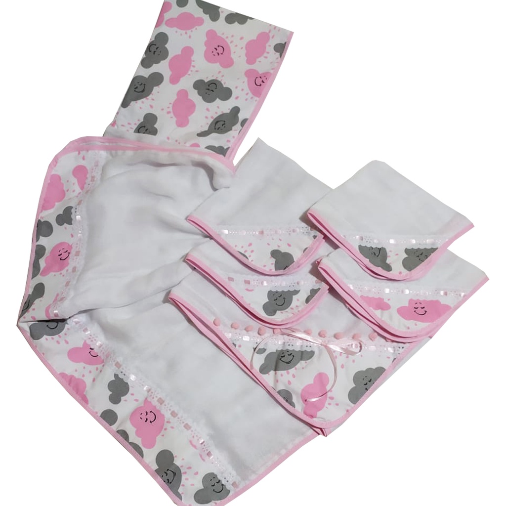 Comprar na ShopeeKit 5 Fralda Pano 100% Algodão Caixa Duplo Bainha Enxoval de Bebê Fralda Ombro