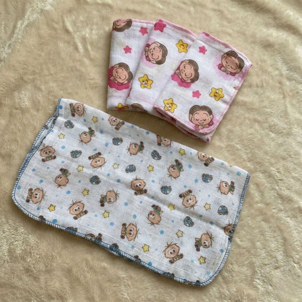 Comprar na Shopeekit higiene Fralda De Pano Bebê Papi Branca ou estampada 60x60cm 100% Algodão Enxoval Infantil Bebê