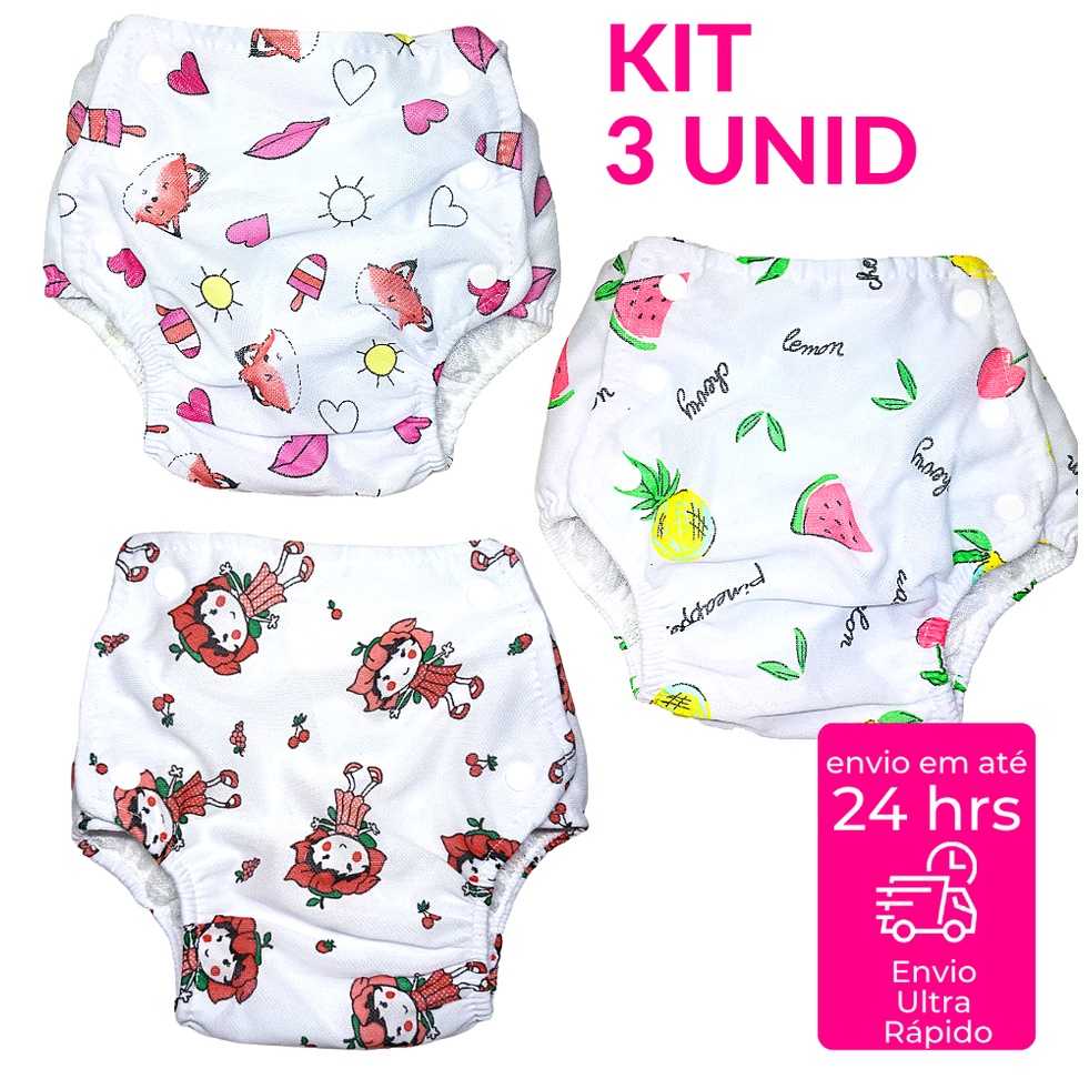Comprar na ShopeePacote com 3 Fralda Plástica Calça Enxuta Reutilizável Ecológica Estampada Transição para Bebê Infantil Desfralde