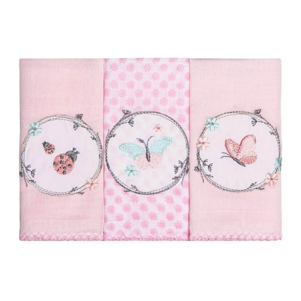 Comprar na ShopeeKit Pano De Boca Papi Bordados Karinho Cores Borboletas - 03 Peças
