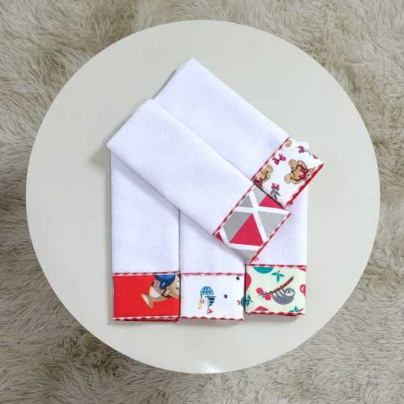 Comprar na ShopeeKit 3 Toalhas de Boca Bebê 100% Algodão | Super Macia e Absorvente | Estampas Lindas