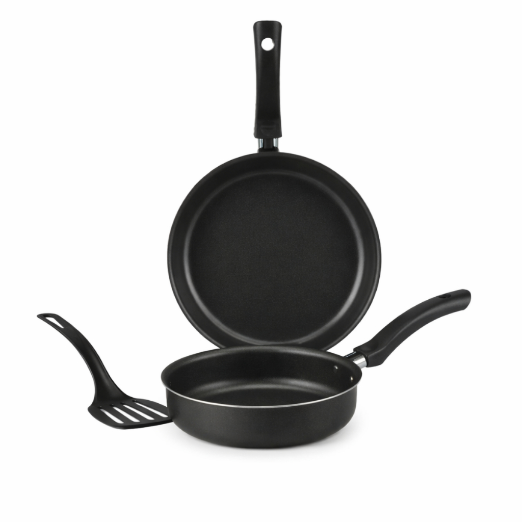 Comprar na ShopeeJogo Frigideira E Espátula 3 Peças 18 E 20Cm Preto Nacional