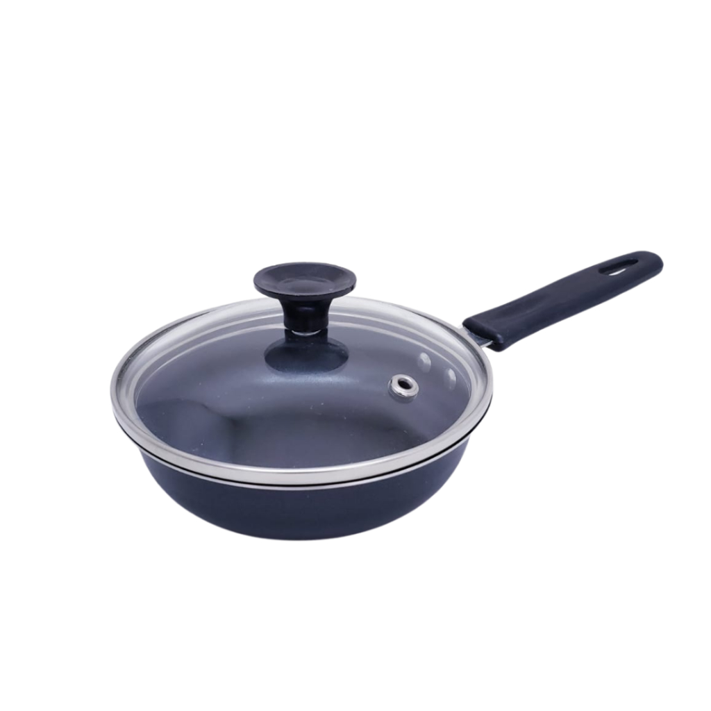 Comprar na ShopeeFrigideira Alta Funda 18 cm Antiaderente Teflon Tampa de Vidro e Espátula Nylon Cor Rose e Preto
