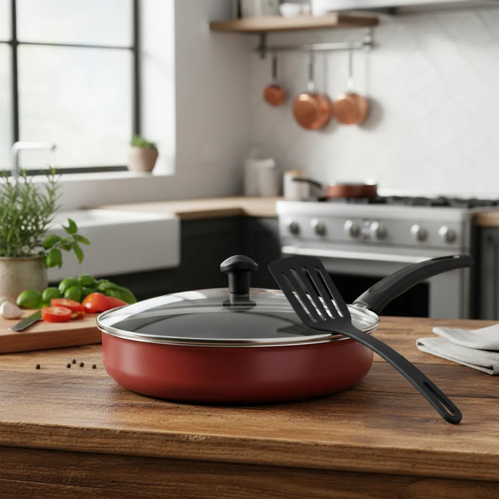 Comprar na ShopeeFrigideira 22cm Funda Antiaderente Com Tampa de Vidro Alta Teflon Cor Vermelho + Espátula Nylon