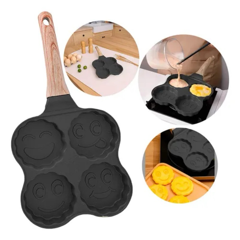 Comprar na ShopeeFrigideira Multifuncional Antiaderente 4 em 1 Ovos Hambúrguer Omelete Com Alça De Madeira