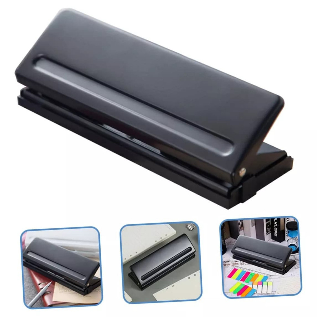 Perfurador de 6 furos dedicado para escritório preto, perfurador de papel de folhas soltas, distância de furo ajustável