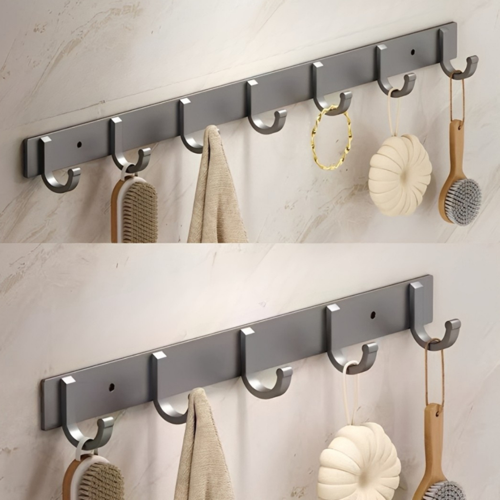 Suporte com Ganchos Modernos Multiuso em Alumínio Ideal para Acessórios, Toalhas, Roupas e Uso Diário